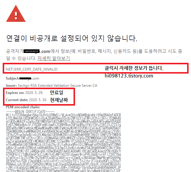 서버 측 원인으로 발생한 경우는 인증서가 만료된 경우입니다.