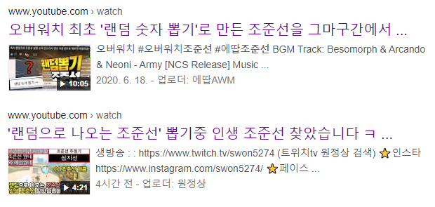 최근에 "랜덤 숫자 뽑기"의 유입과 댓글로 오버워치 조준선 얘기가 있길래 뭔가 하고 찾아보니