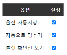 자동 옵션 저장으로 설정값은 브라우저에 실시간으로 저장할 수 있습니다.