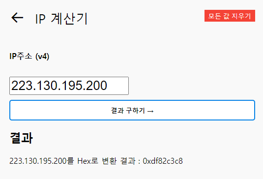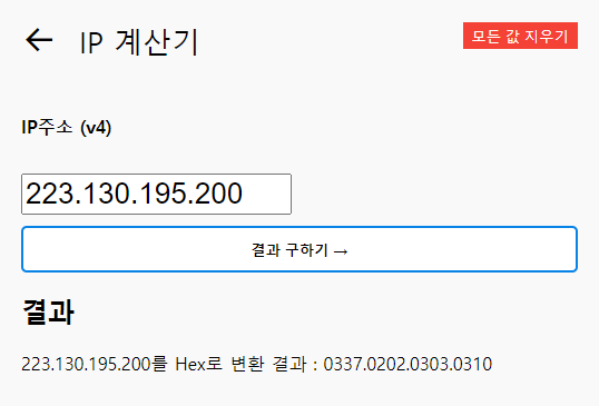 예를 들어 네이버의 아이피주소인 223.130.195.200를 가지고 변형해보겠습니다.