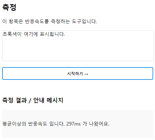 이 항목은 반응속도를 체감하는 도구입니다. 여러번 눌러도 됩니다.