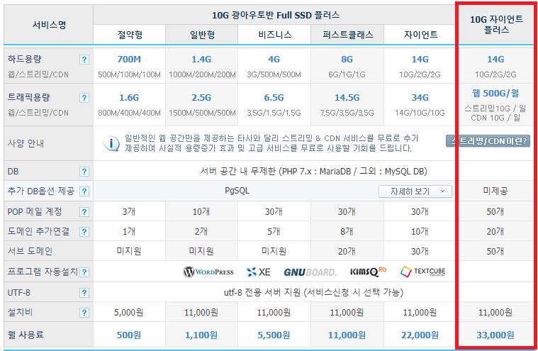 이외에도 기존의 대부분 회사의 호스팅, 동급의 가상서버 상품들을 압도합니다.